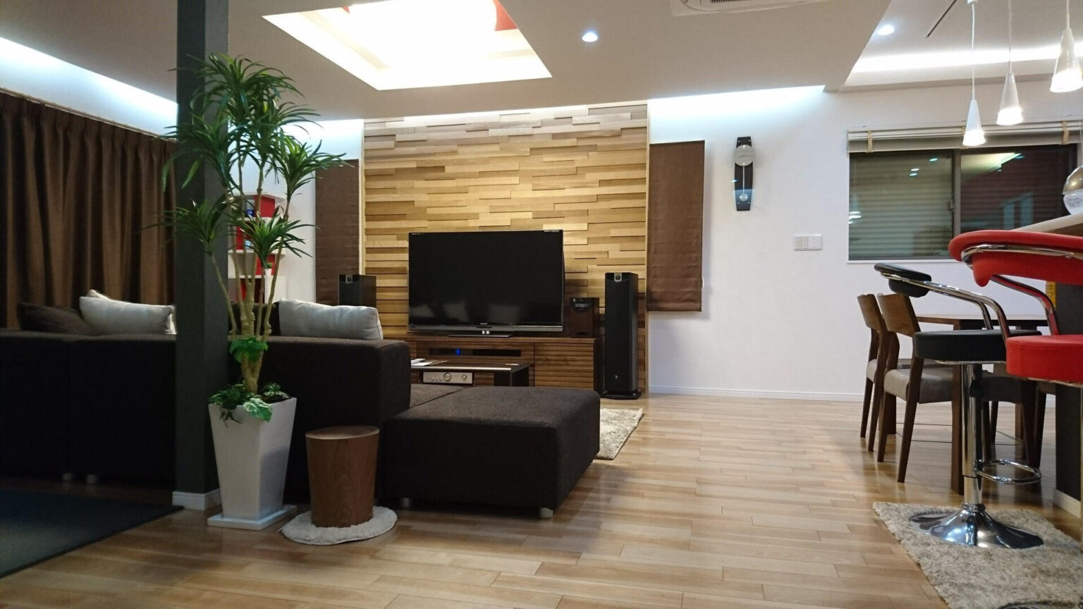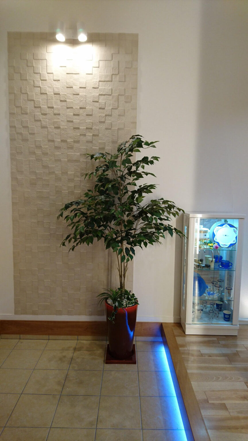 光触媒のフェイクグリーンをレイアウト。家の全ての空間に空気清浄機は置けません。光触媒加工されたインテリアグリーンを置いておしゃれに空気内のカビや化学物質を取り除きます。フェイクグリーンは虫もつかないので安心です。